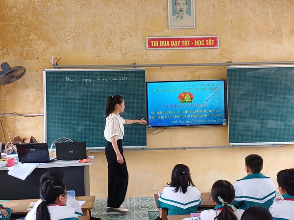 Liên đội cũng lồng ghép tuyên truyền các nội dung về phòng chống bạo lực học đường, hướng dẫn học sinh biết cách bảo vệ bản thân và lên tiếng khi gặp hoặc chứng kiến các hành vi sai trái. Đặc biệt, các em đã cùng nhau ký cam kết thực hiện "5 điều tình bạn đẹp", thể hiện quyết tâm chung tay xây dựng tập thể lớp và nhà trường không có bạo lực.