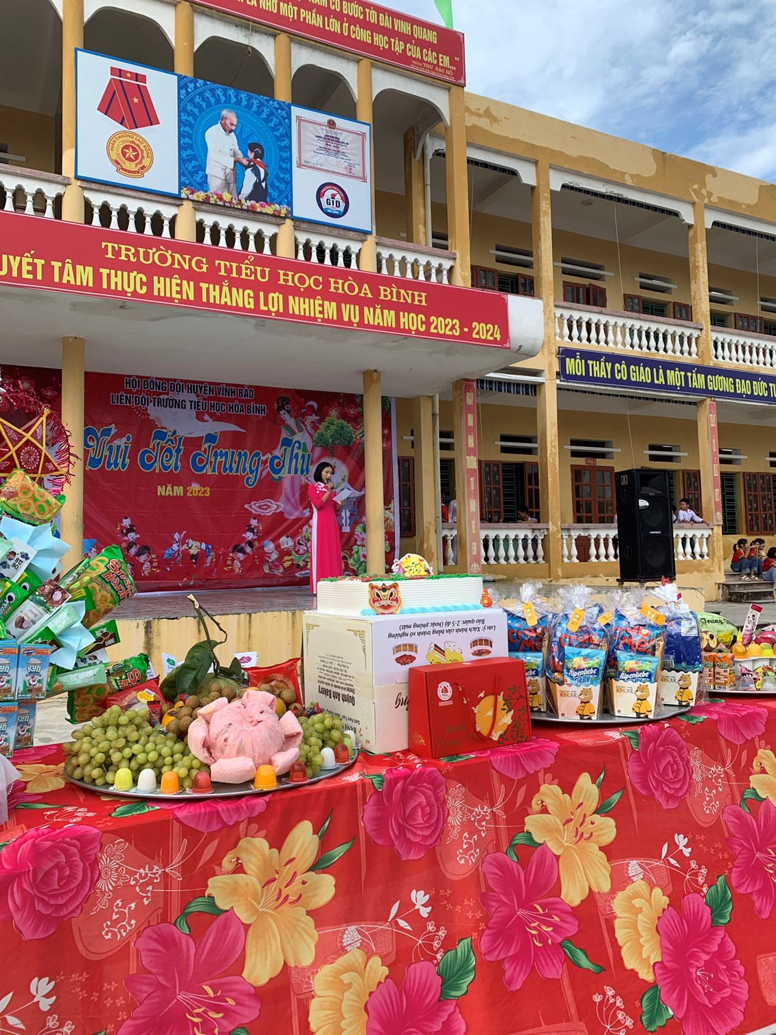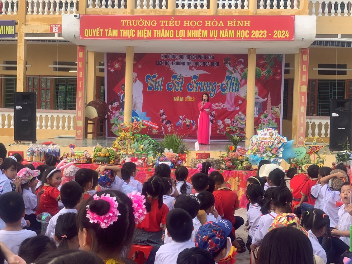 Tại ngày Hội, các em học sinh đã được nghe giới thiệu về nguồn gốc Tết Trung thu, nghe đọc thư của Chủ tịch nước Nguyễn Văn Thưởng gửi các cháu thiếu niên, nhi đồng nhân dịp Tết trung thu. Vui tết Trung thu ở trường Tiểu học Hoà Bình có sự hiện diện của các đồng chí Trịnh Thị Huyền- Bí thu chi đoãn xã cùng với sự tham gia của thầy, trò và hội phụ huynh ở các khối lớp.